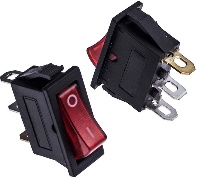 КОММУТАЦИЯ\Клавишные переключателиКлавишный переключатель ON-OFF 3pin, с подсветкой 250В 15А