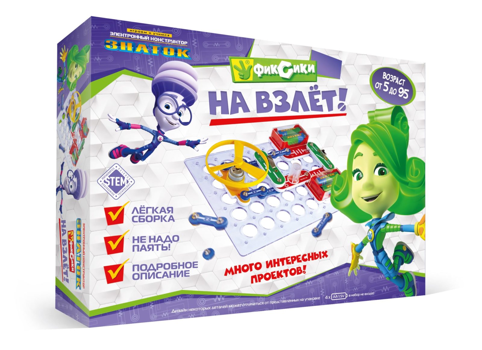 Электронный конструктор начального уровня, позволяющий ребёнку понять, как работают многие «умные вещи» вокруг нас, и в частности, исследовать схемы с пропеллером, понять принцип «тяни-толкай» в авиации. И просто позапускать пропеллер! Даже без помощи взрослых, используя очень понятное цветное руководство, всего за несколько минут, дети смогут собрать и испытать схему с практически 100% положительным результатом. Очень полезна будет подсказка в виде QR-кода, которую можно просмотреть при помощи смартфона или планшета