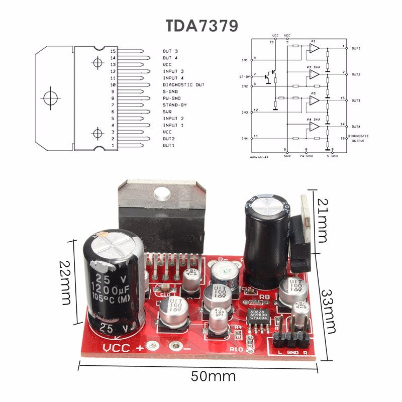 TDA7379 Плата усилителя звука 2х39Вт AD828 DC 12V (FUT-TDA7379)