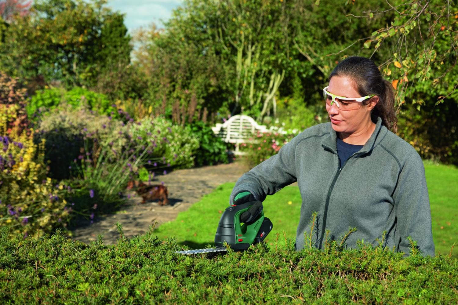 - Особенности: Возможность работы одной рукой: идеально подходит для придания формы и стрижки молодых живых изгородей, кустарников или газона.