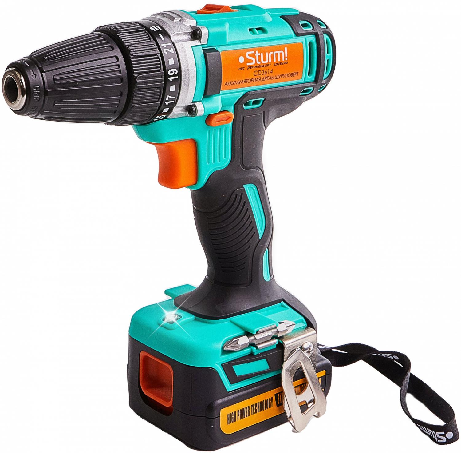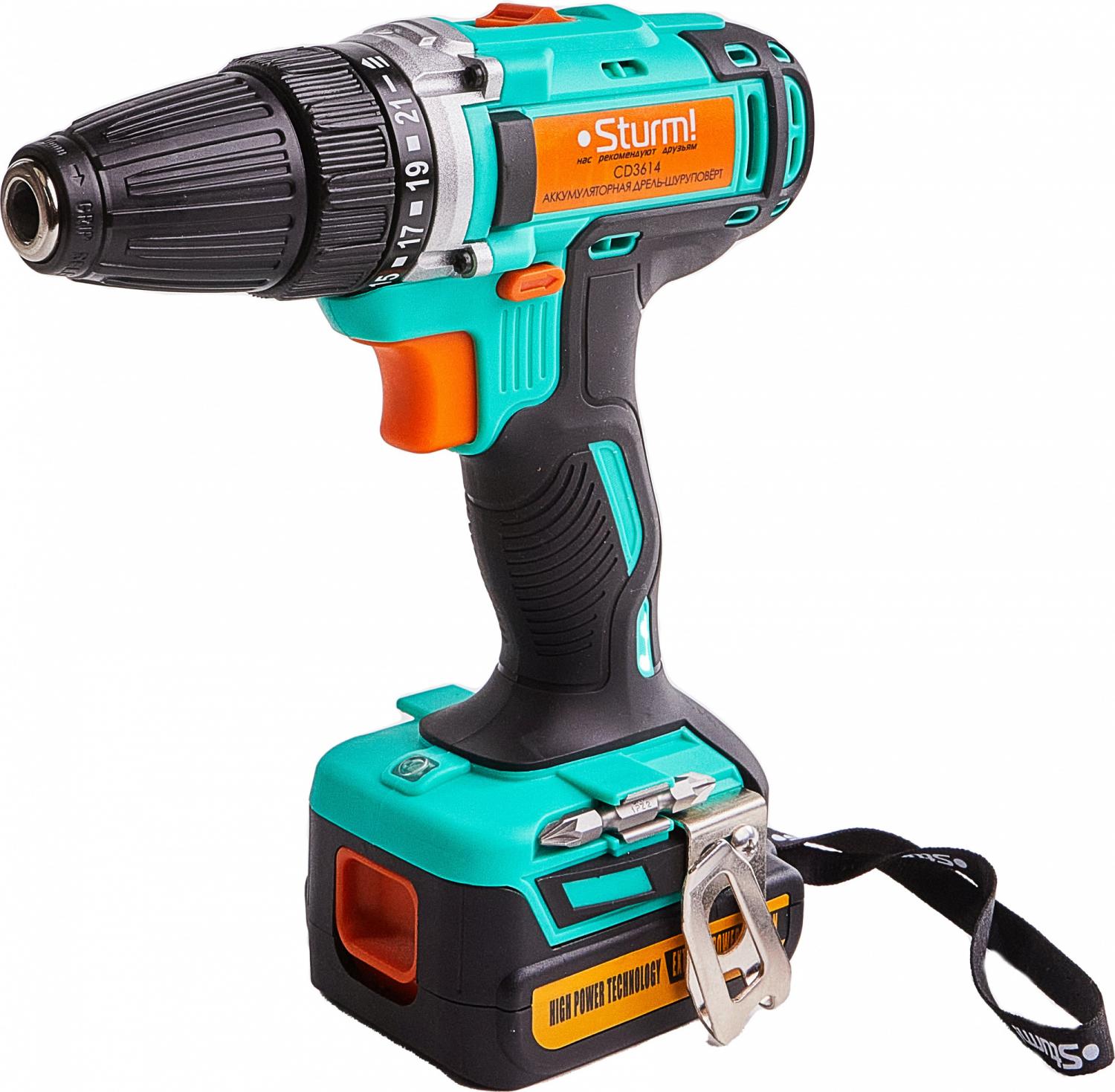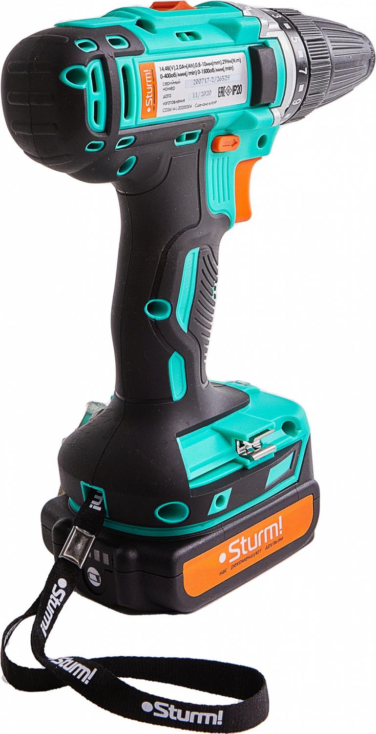 - Комплект поставки: Аккумуляторная дрель-шуруповерт,аккумуляторная батарея (2 шт., одна подсоединена к шуруповерту), зарядное устройство, двусторонняя бита 2 шт., инструкция, кейс.