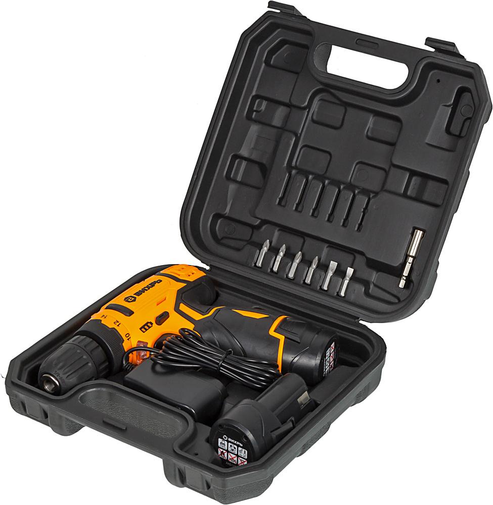 - Комплект поставки: Дрель-шуруповерт, 2 аккумулятора, адаптер питания, инструкция, кейс.
