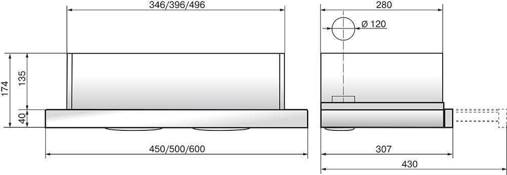 - Глубина вытяжки: 307