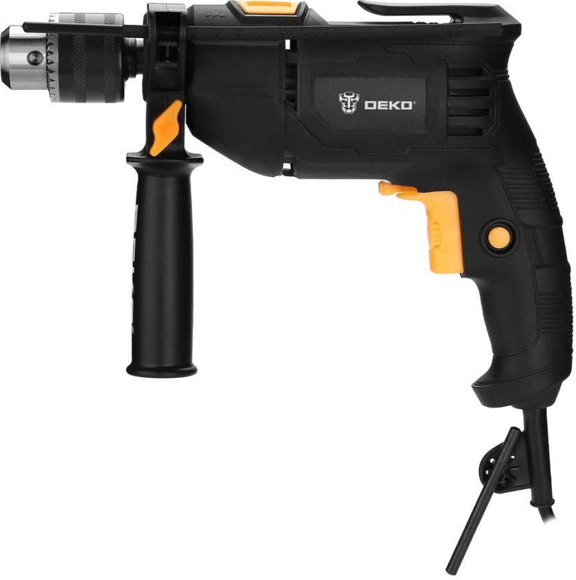- Особенности: Ударная дрель, вспомогательная рукоятка, ограничитель глубины.