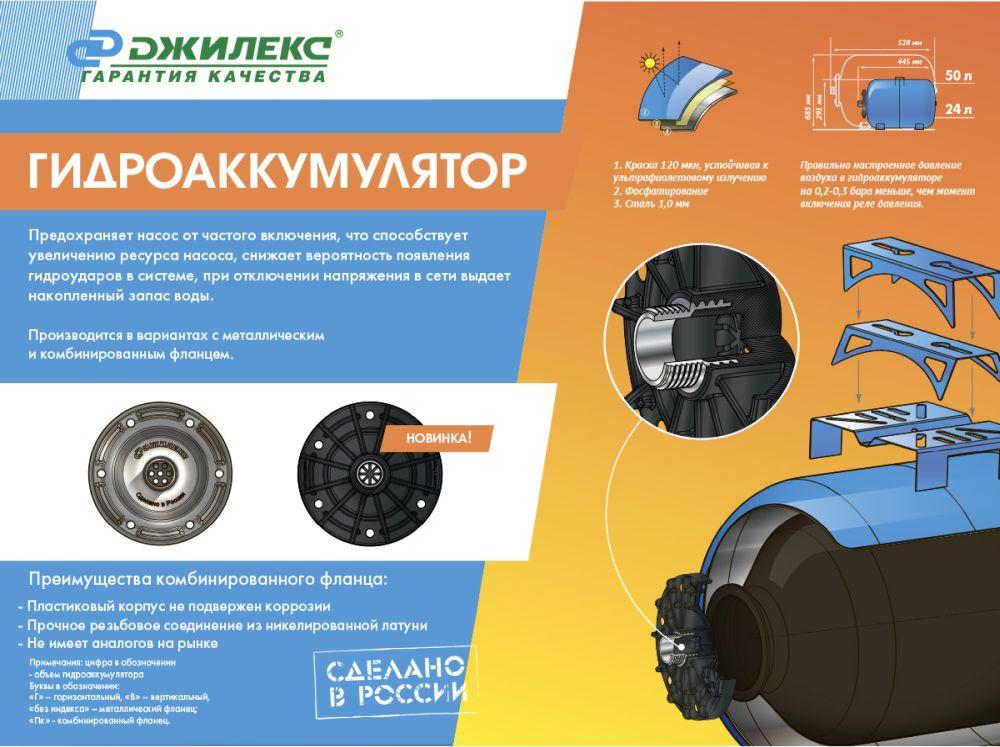 - Описание: Предохраняет насос от частого включения, что способствует увеличению ресурса насоса, снижает вероятность появления гидроударов в системе, при отключении напряжения в сети выдают накопленный запас воды. Особенности: 1. объем 24 литра, 2. горизонтальный, 3. оцинкованный фланец. 4. Мембрана