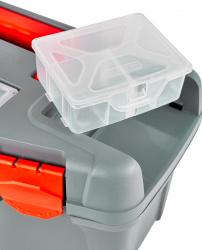 - Описание: Ящик помогает содержать в порядке и быстро находить необходимые инструменты и принадлежности к ним. Идеален для использования дома, на даче, в гараже, мастерской, в автомобиле. Хранение инструментов в ящике защищает от пыли и грязи. Наличие ручки позволяет переносить инструменты на место выполнения