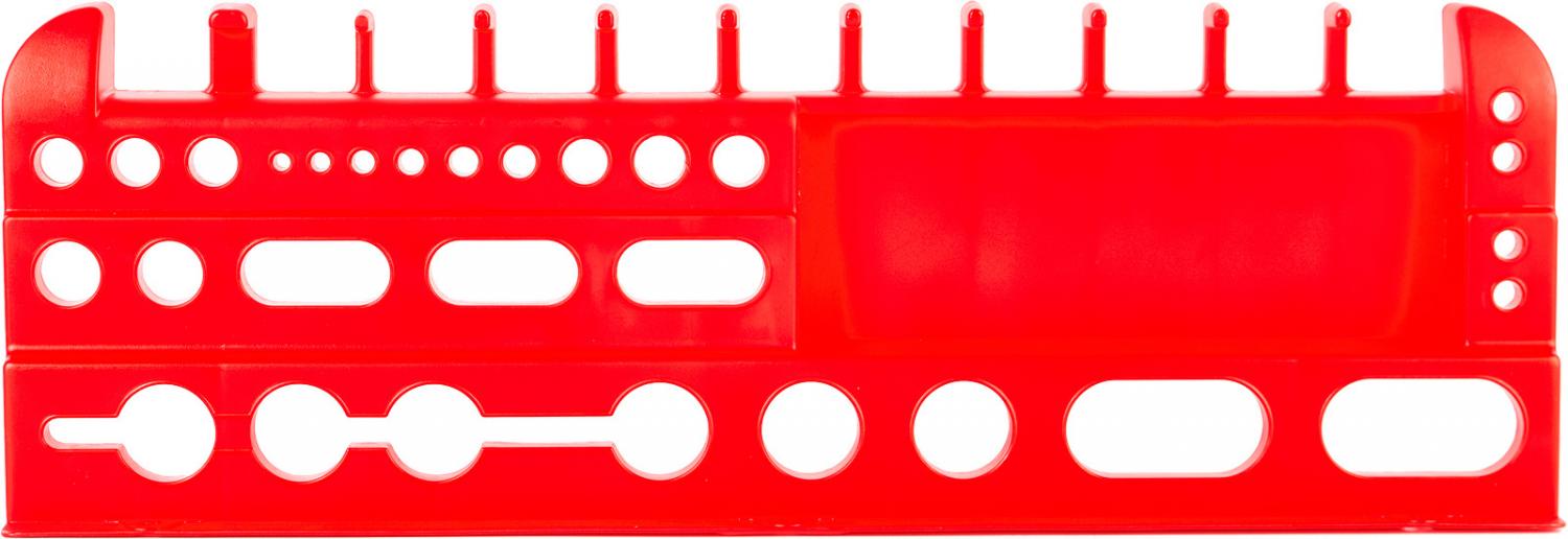 - Описание: Полка помогает экономить место на рабочем столе, содержать в порядке и быстро находить необходимые инструменты и приспособления. Вмещает более 40 предметов! Идеальна для использования дома, на даче, в гараже, мастерской. Монтаж на вертикальную поверхность осуществляется с помощью саморезов.