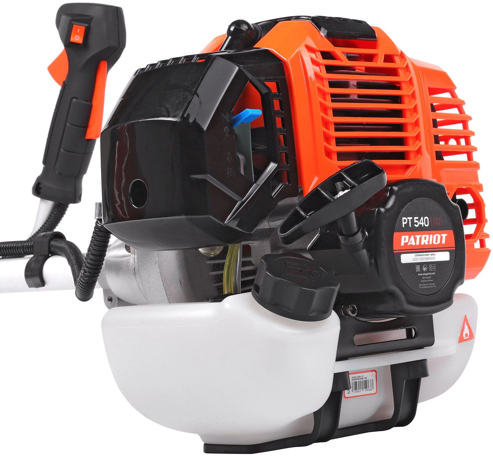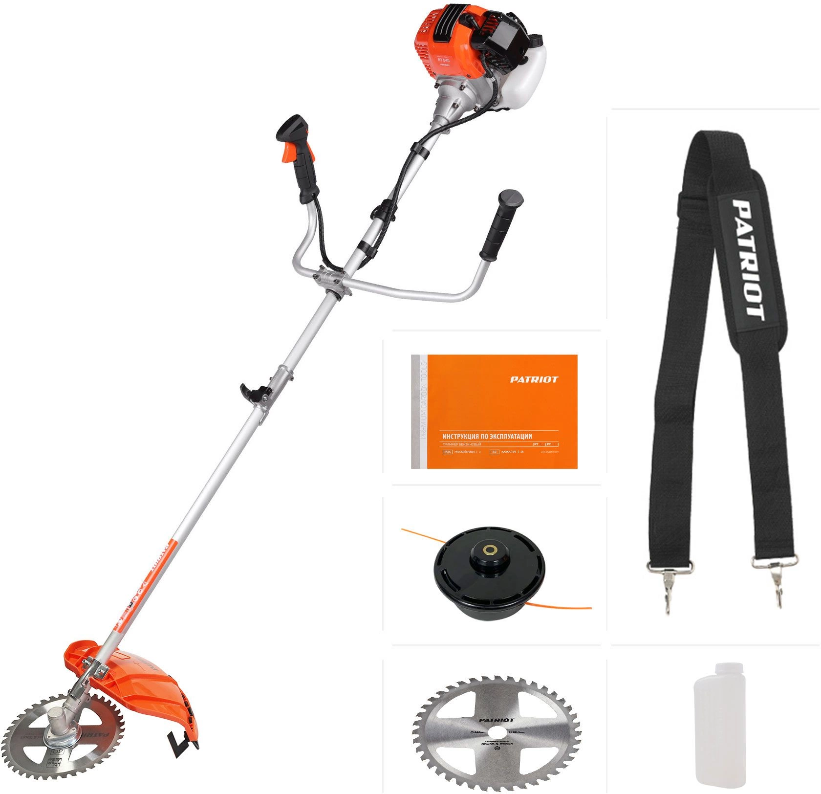 - Комплект поставки: Двигатель в сборе, Трансмиссионный узел, Рукоятка левая, Плечевой ремень, Защитный кожух, Триммерная катушка, Металлический нож, Зип комплект, Канистра для приготовления топливной смеси, Инструкция
