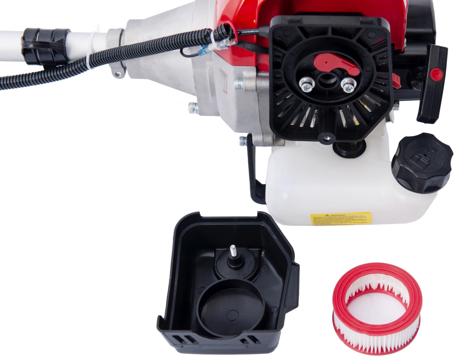 - Комплект поставки: Трехлопастной нож, Катушка с нейлоновой леской, Плечевой ремень, Канистра для топливной смеси, Сумка с инструментом необхоимым для сборки, Режущий диск 80 зубьев, Инструкция по эксплуатации, Инструкция по безопасности