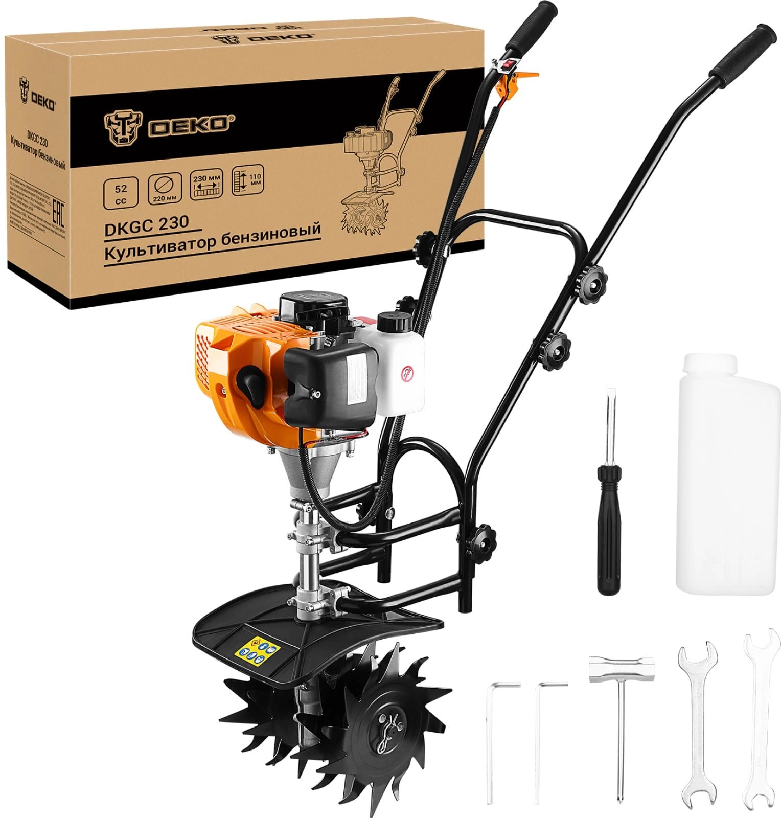 - Ширина обработки почвы: 230
