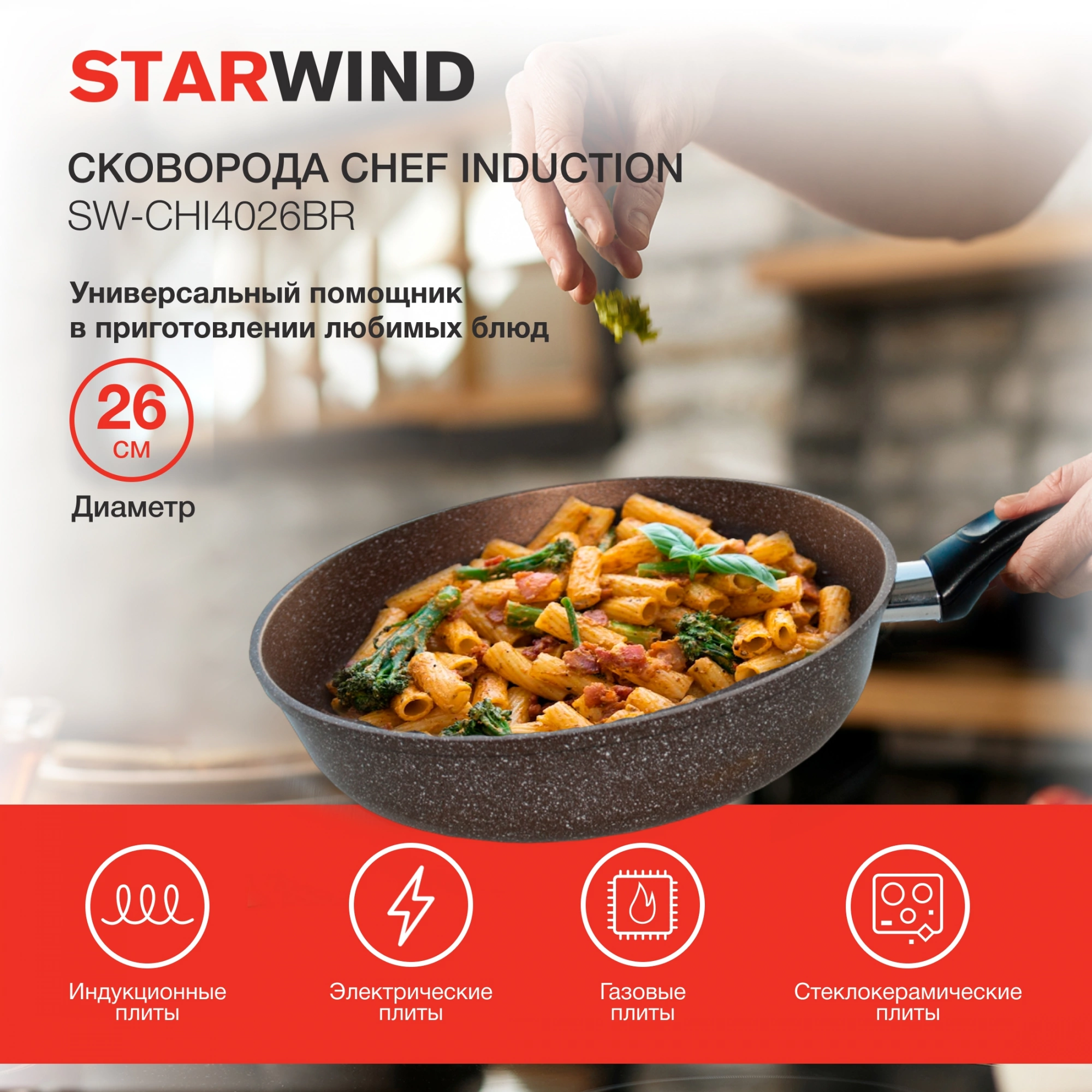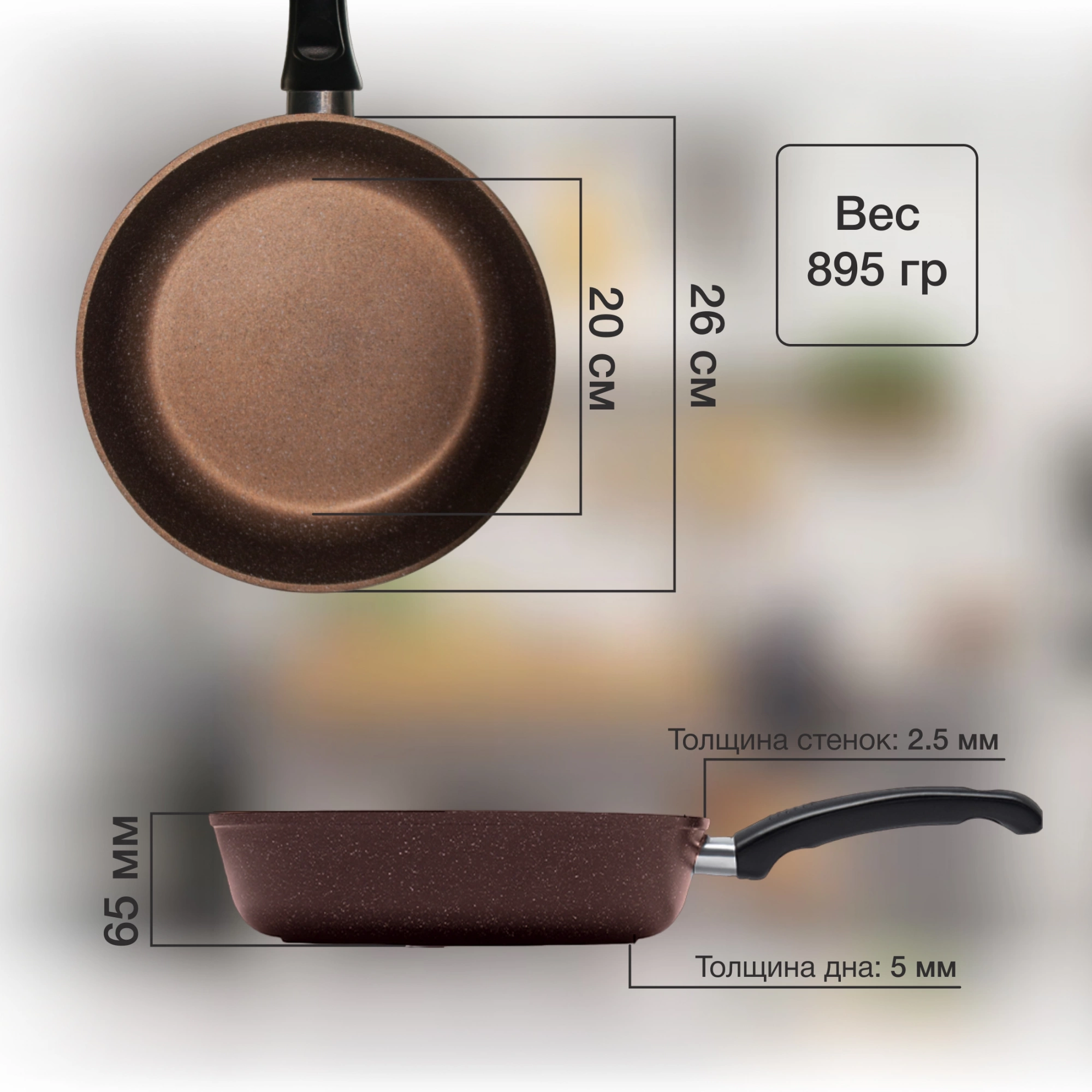 - Диаметр сковороды: 26