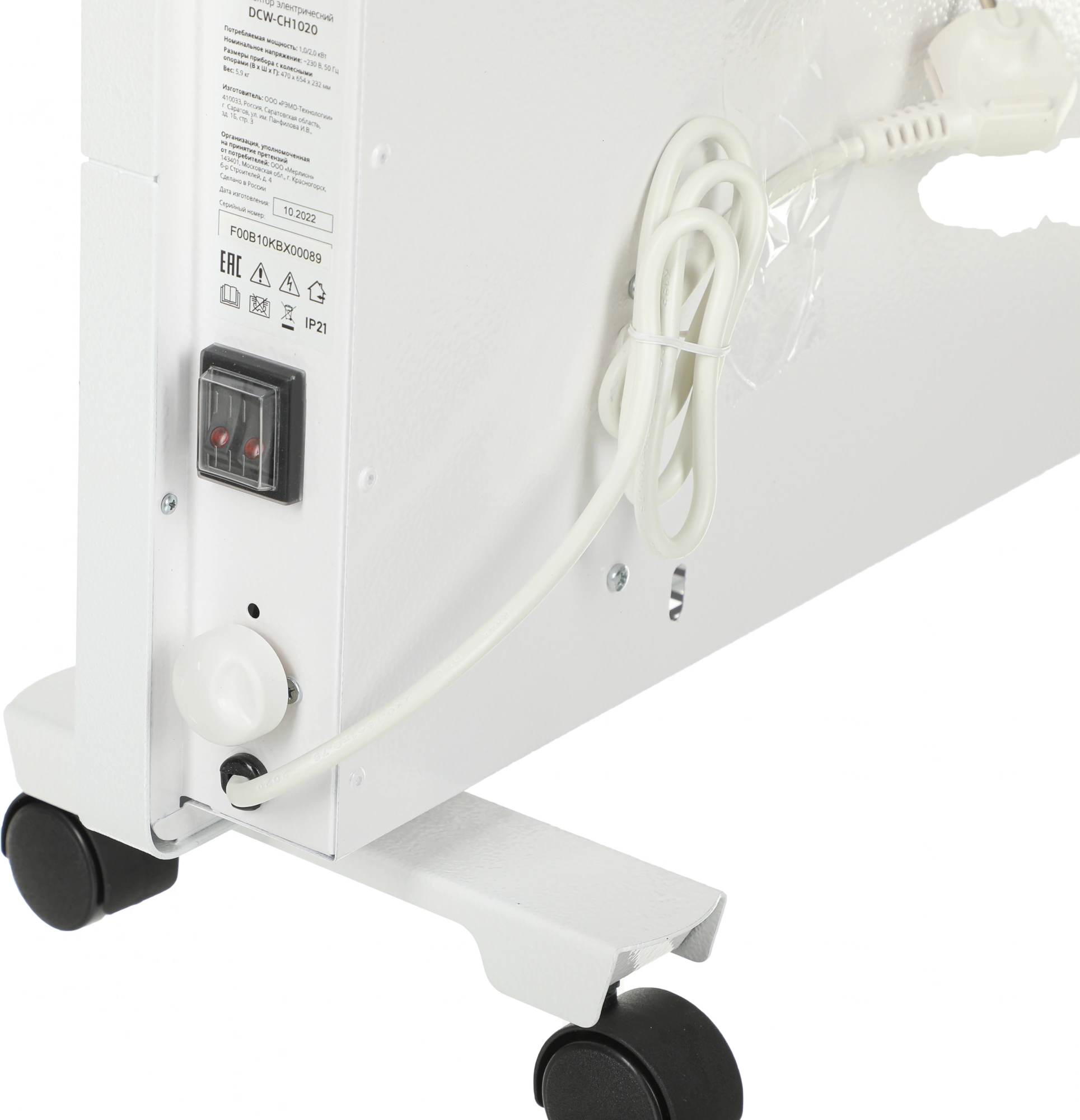 - Класс защищенности обогревателя: IP21