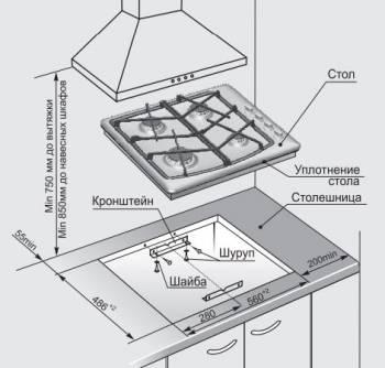 - Размеры для встраивания: 560x486