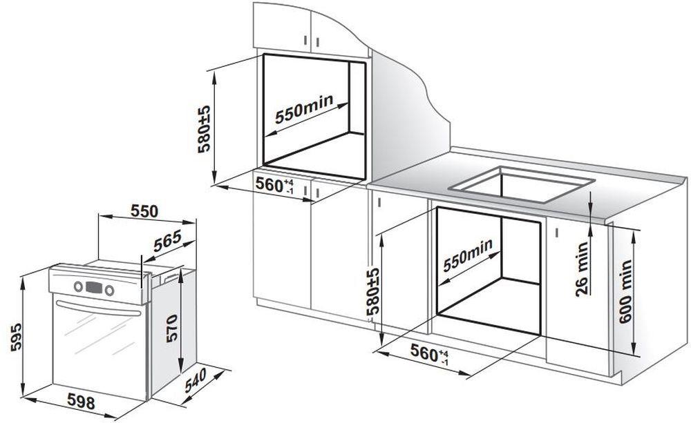 - Размеры для встраивания: 56x55x60см