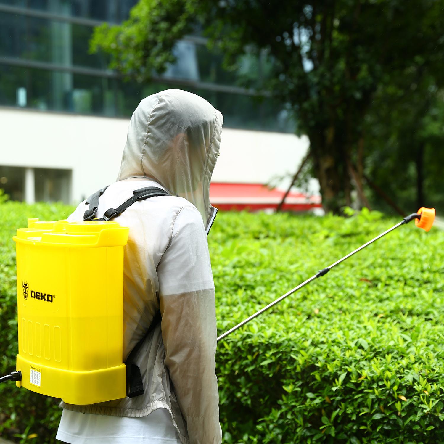 - Описание: Опрыскиватель садовый аккумуляторный DEKO DKSP12 используется для распыления воды и удобрений, дезинфекции, дезинсекции, мытья окон, машин и стен, защиты растений от вредителей. Регулируемые лямки обеспечивают удобство перемещения опрыскивателя, можно носить как ранец.