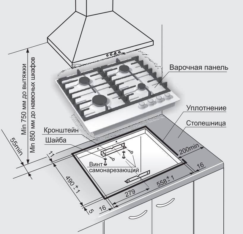 - Размеры для встраивания: 558x490
