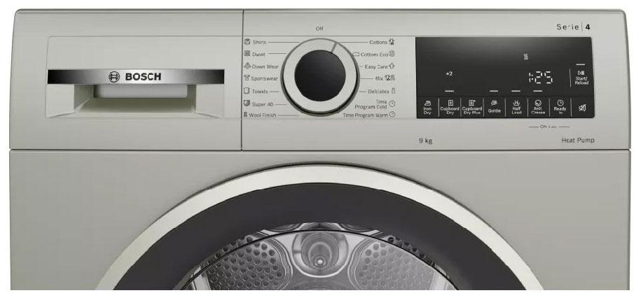 - Программы: Сушка хлопка, сушка хлопка эко, рубашки, пуховики, спортивная одежда, тонкое белье, смешанное белье, полотенца, шерсть, деликатное белье, AutoDry, супербыстрая, сушка по времени тепло/холод