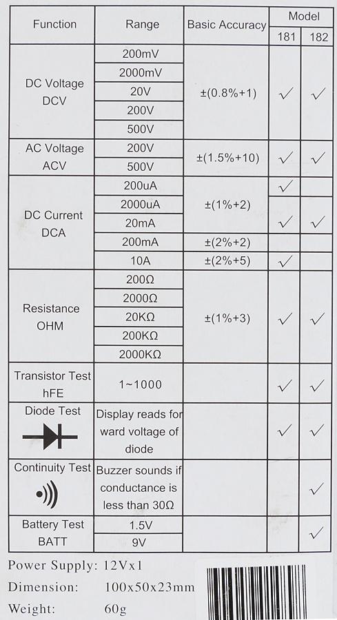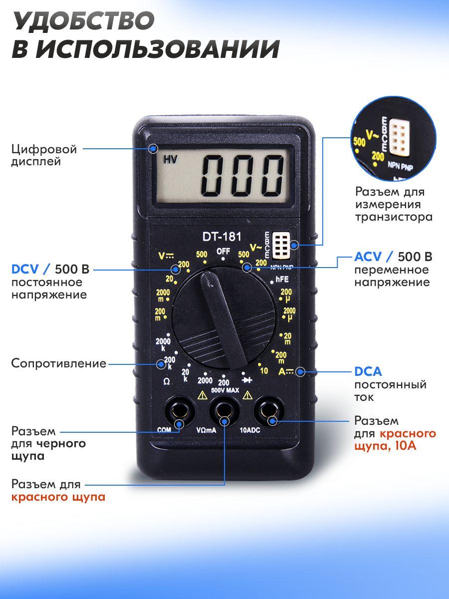 - Комплект поставки: Мультиметр, 2 измерительных щупа, инструкция, коробка.