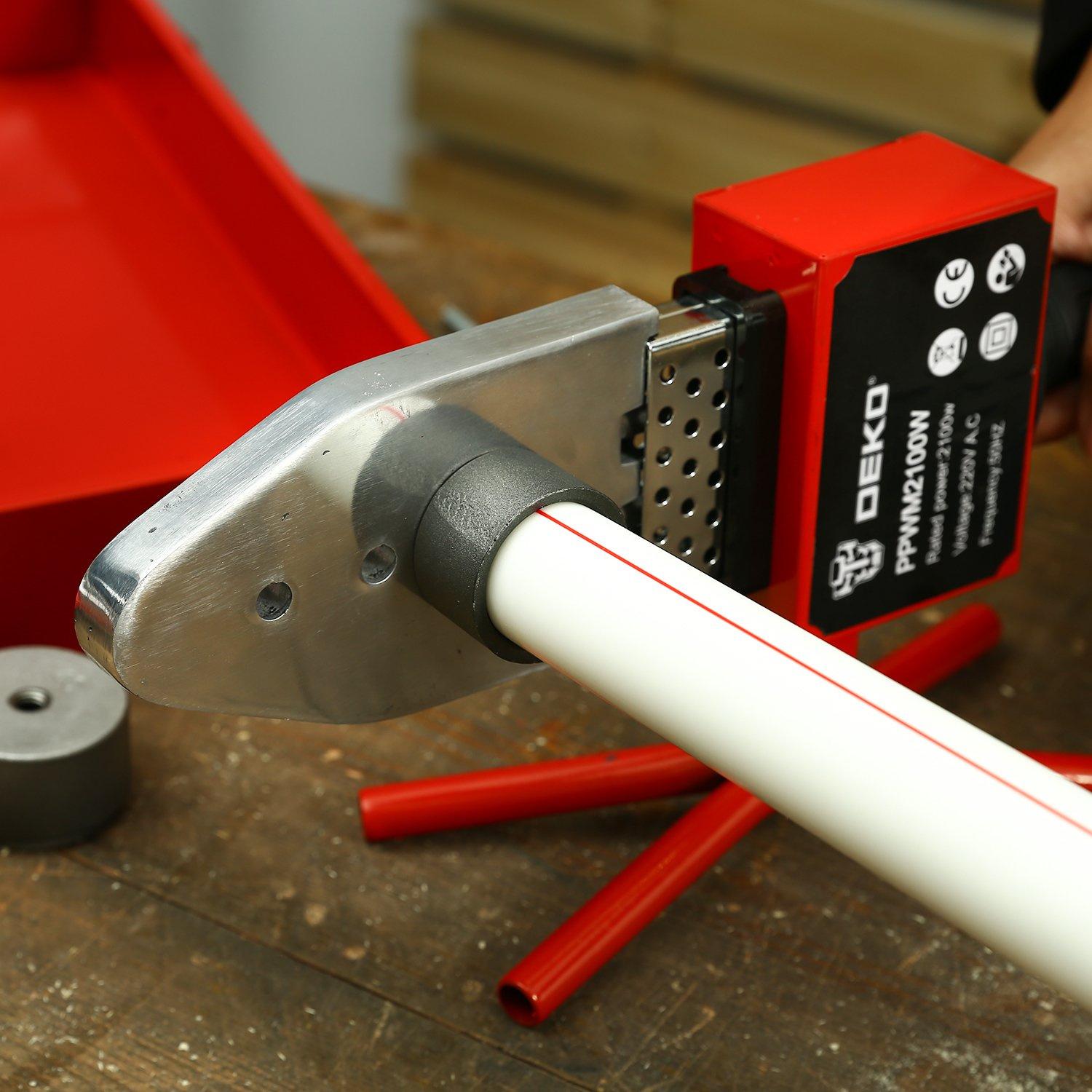 - Описание: Аппарат для сварки полипропиленовых труб DEKO PPWM2100W обеспечивает надежное и герметичное соединение труб и фитингов, изготовленных из полипропилена и других полимеров. Поставляется в металлическом кейсе, в комплекте с подставкой и 6 насадками (20-63 мм).