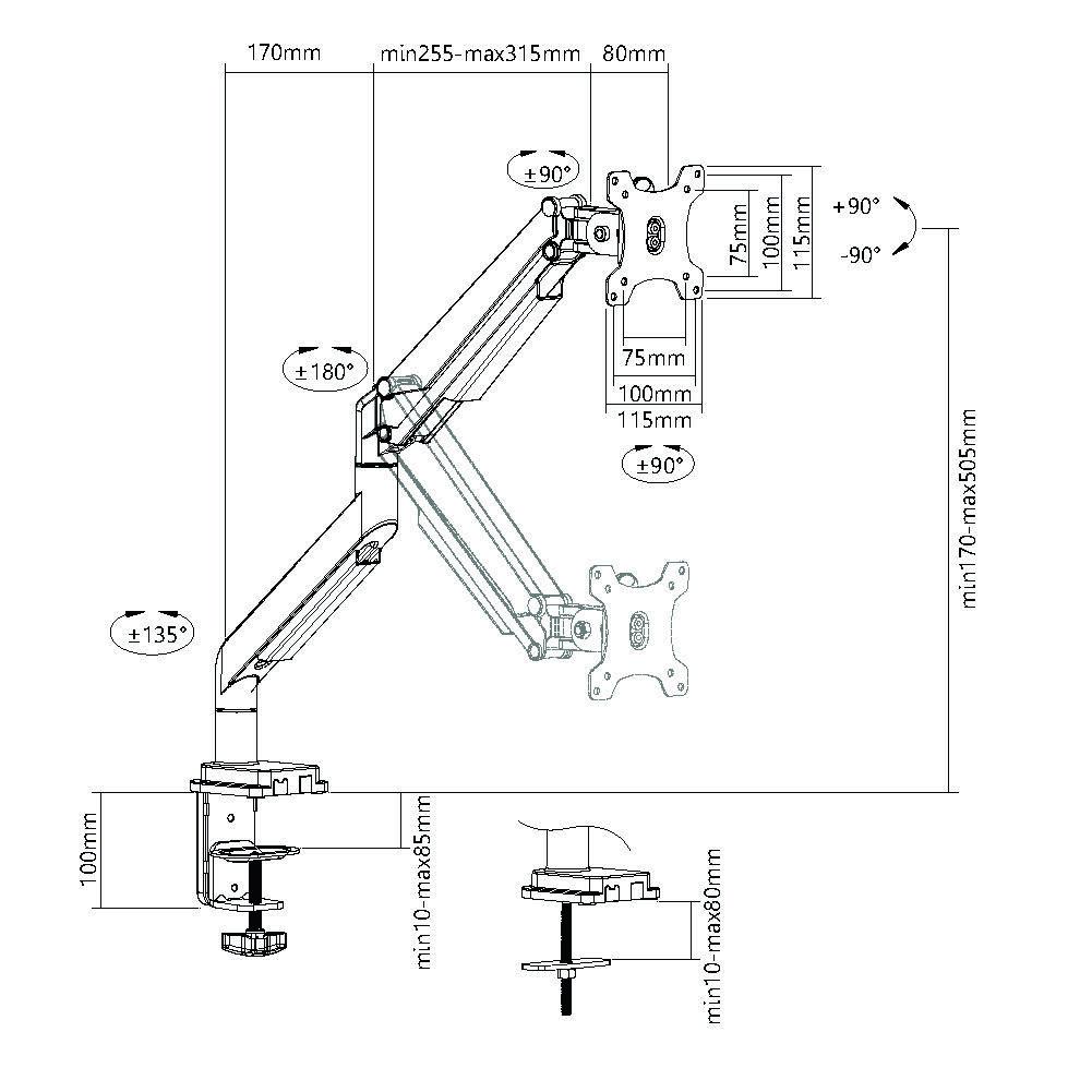 - Угол наклона: -90/+90