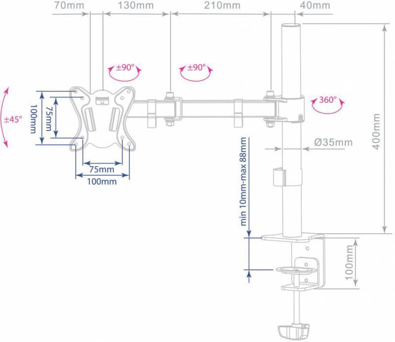 - Особенности: Регулируемое по высоте крепление. Мощная стальная конструкция. Кабель-каналы. Съемная монтажная пластина. Надёжное крепление к столу