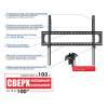 - Особенности: Мощная стальная конструкция с толщиной метала 3 мм, способная выдержать любой ТВ весом до 103 кг. Надежный механизм фиксации ТВ на кронштейне при помощи замка.