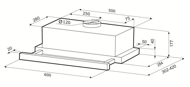 - Ширина вытяжки: 600