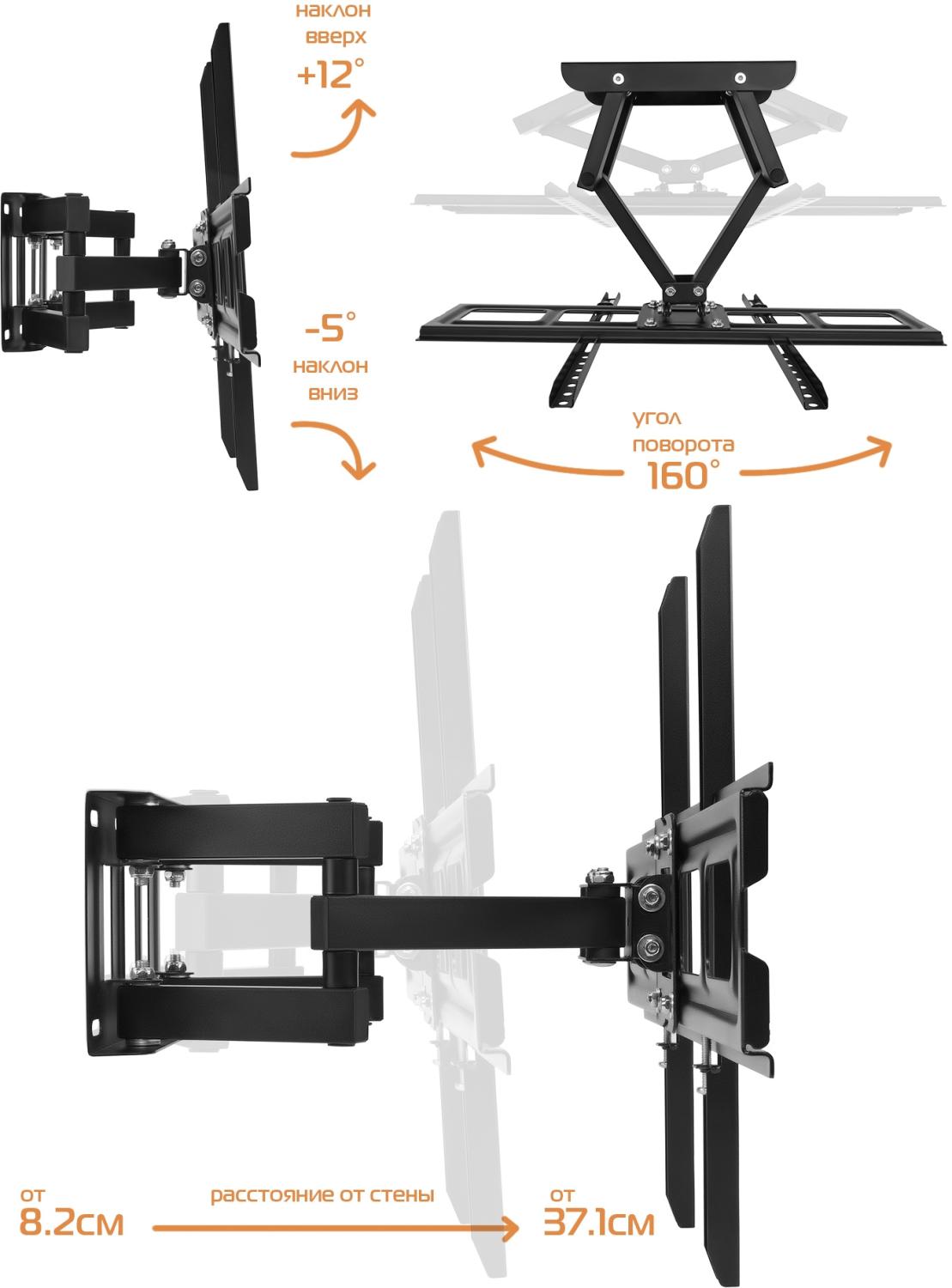 - Подходит для телевизоров c диагональю: 32", 37", 39", 40", 42", 46", 48", 50", 52", 55", 60", 65", 70"