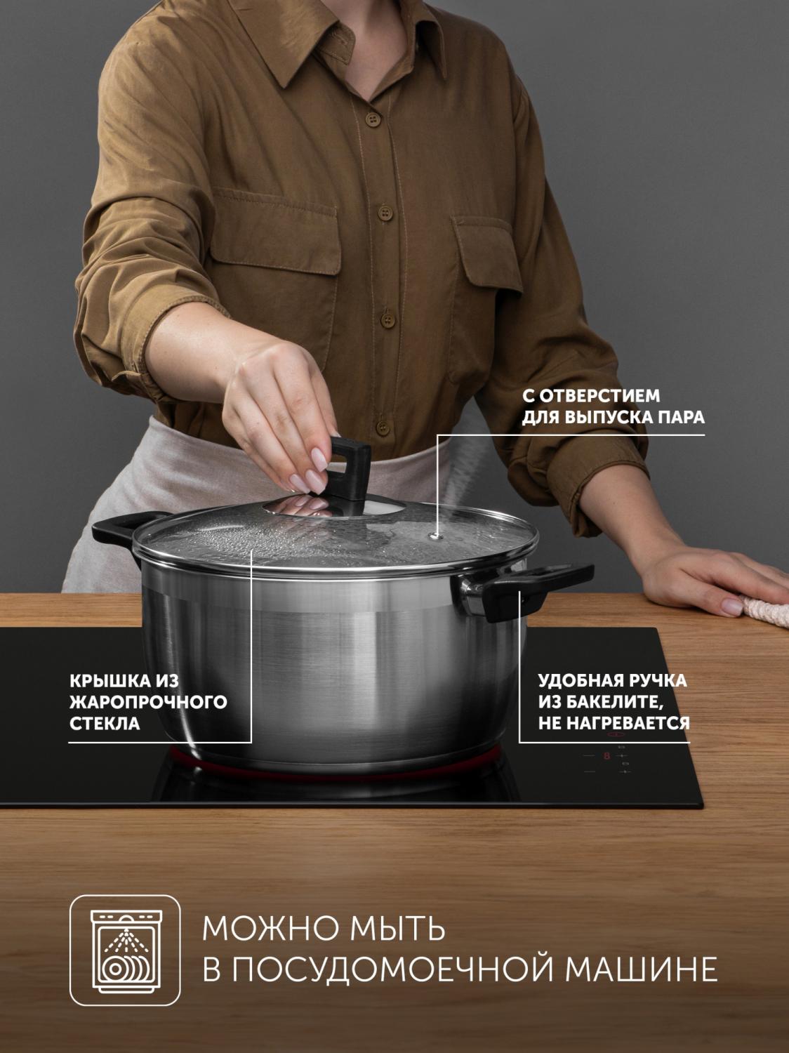- Совместимые плиты: для газовых плит, для галогеновых плит, для индукционных плит, для стеклокерамических плит, для электрических плит