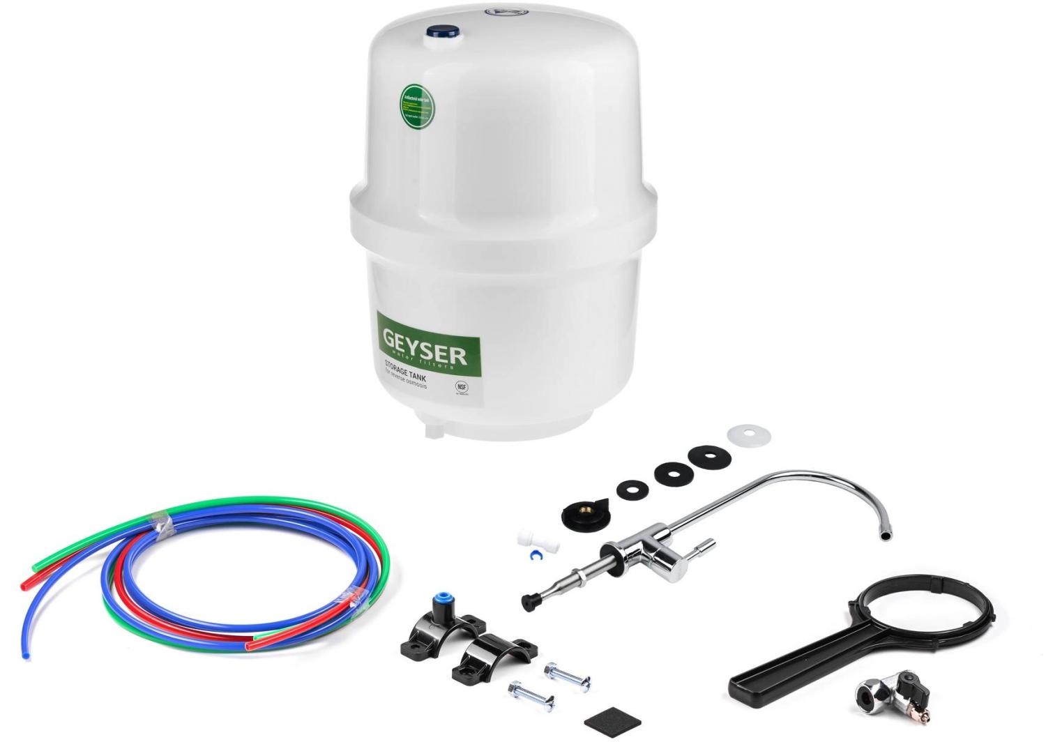 - Комплектующие фильтра: кран для воды, накопительная емкость
