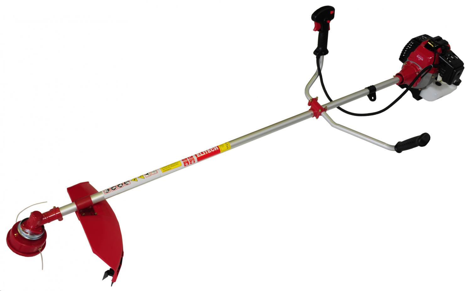 - Особенности: Кованый вал. Регулируемая рукоятка велосипедного типа. Защита топливного бака. Многоразовый воздушный фильтр. Система виброгашения. Работа с леской и ножом.