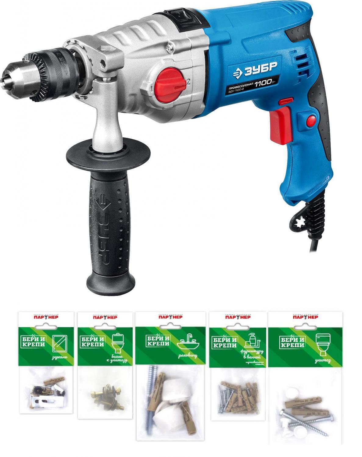 Дрель ударная Зубр ЗДУ-1100-2 ЭРМКМ2 1100Вт патрон:кулачковый реверс (кейс в комплекте)