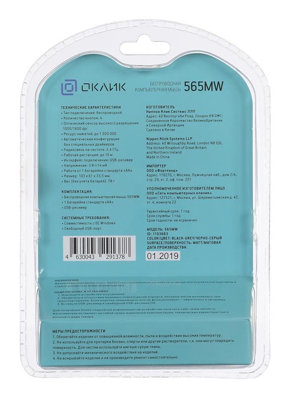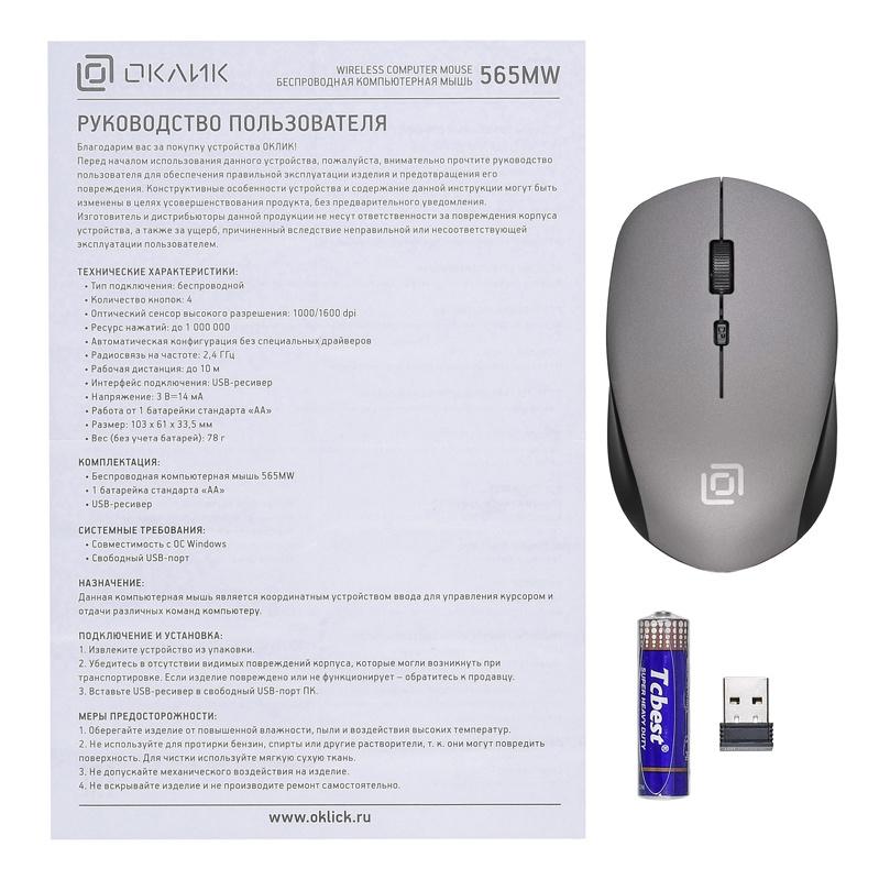 - Комплект поставки: Беспроводная компьютерная мышь 565MW 1 батарейка стандарта «АА» USB-ресивер