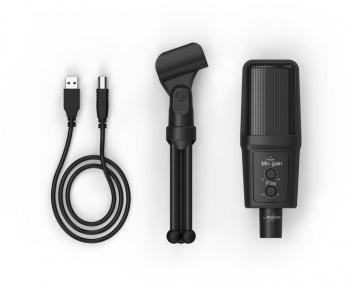 - Особенности: Микрофон идеально подходит для подкастов, закадрового голоса, видеоблогов, записи музыки или потоковой передачи на Twitch, YouTube и Facebook. Запись без помех благодаря фильтрации помехового шума. Прямое управление микшированием звука с микрофона и ПК. Регулируемый штатив.
