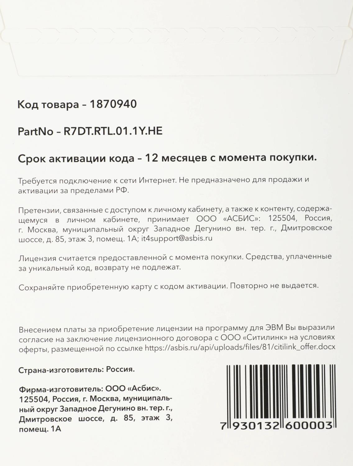- PartNumber/Артикул Производителя: R7DT.RTL.01.1Y.HE