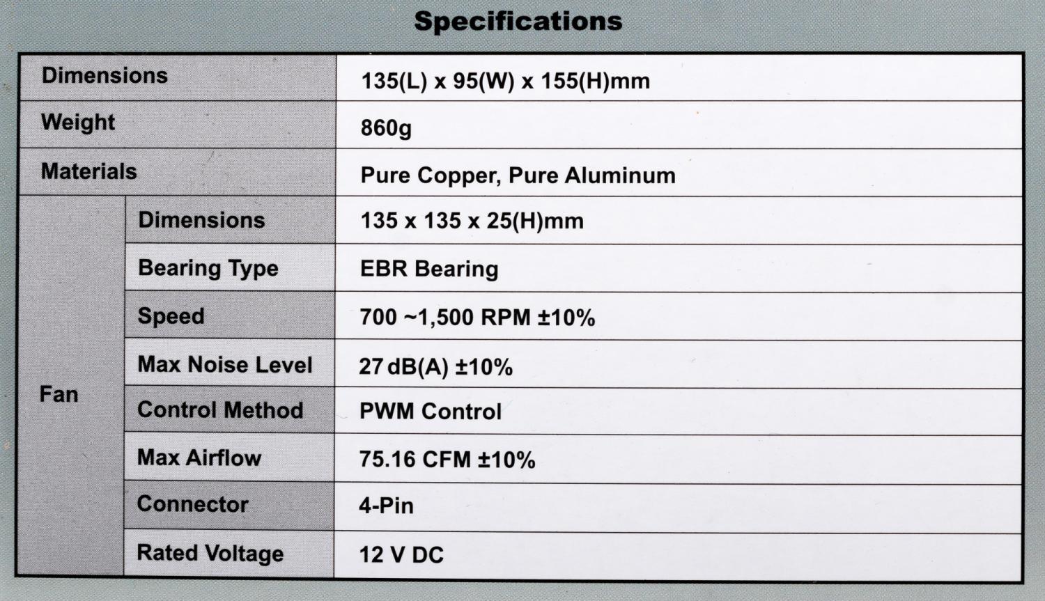 - Питание вентилятора от материнской платы: 4-pin