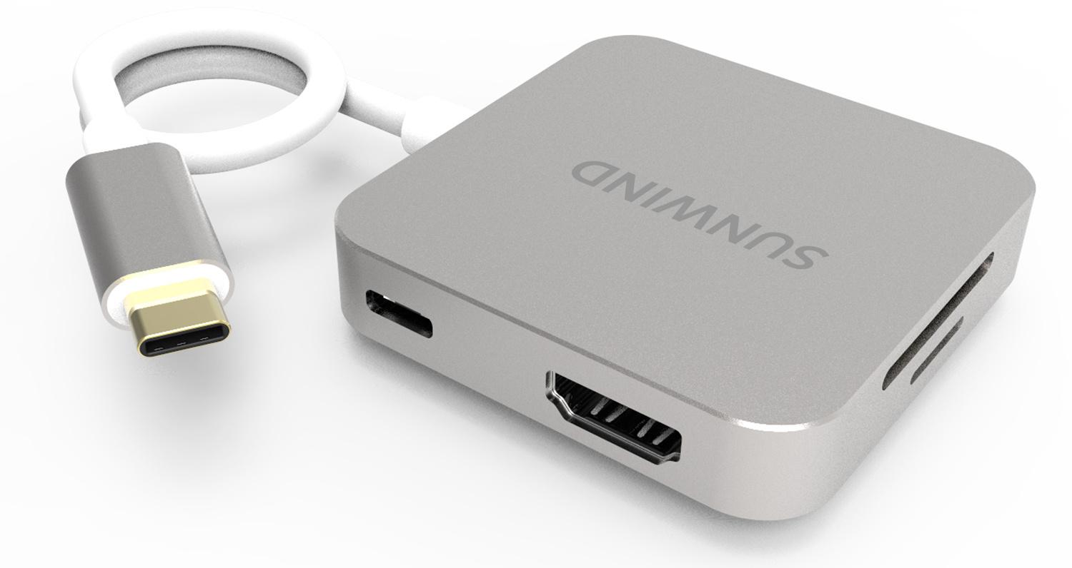 - Описание: Type-C док-станция SUNWIND, 6 портов (HDMI (4K@30HZ, FULL HD@60Hz), 2xUSB 3.0, PD 3.0 USB-C 60W, MicroSD, SD)