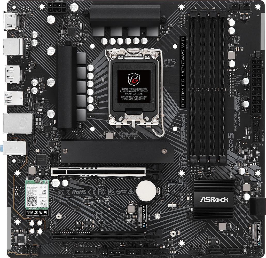 Материнская плата Asrock B760M PG LIGHTNING WIFI Soc-1700 Intel B760 4xDDR5 mATX AC`97 8ch(7.1) 2.5Gg RAID+HDMI+DP от магазина РЭССИ