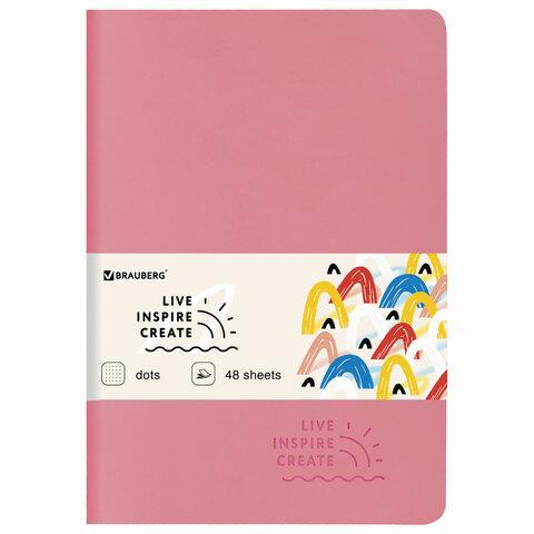 Тетрадь BRAUBERG RAINBOW A5 147x210 мм 48 листов сшивка в точку кожзам SoftTouch розовый 403882